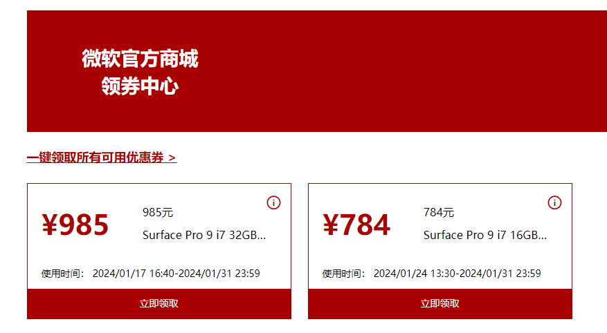 微软官网的优惠券也可以帮助节省购机成本,在购机之前可以先领券,再消费,微软官网优惠券官方地址:领取 Surface 优惠券。